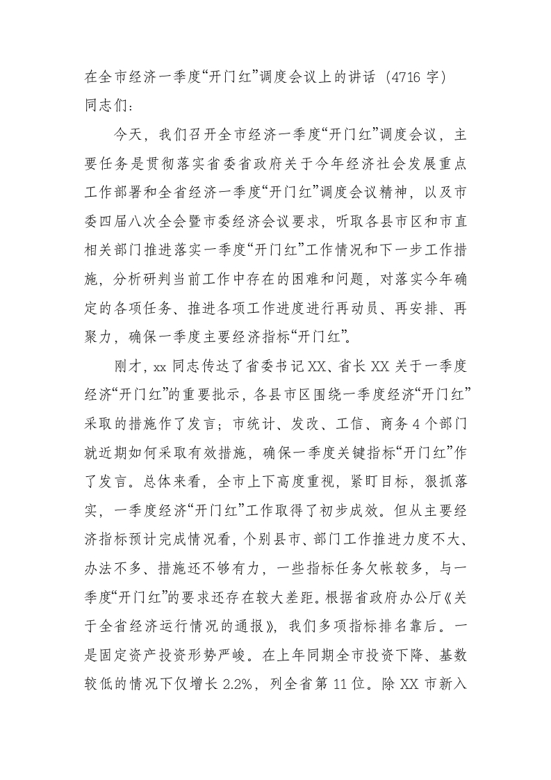 / 在全市经济一季度“开门红”调度会议上的讲话