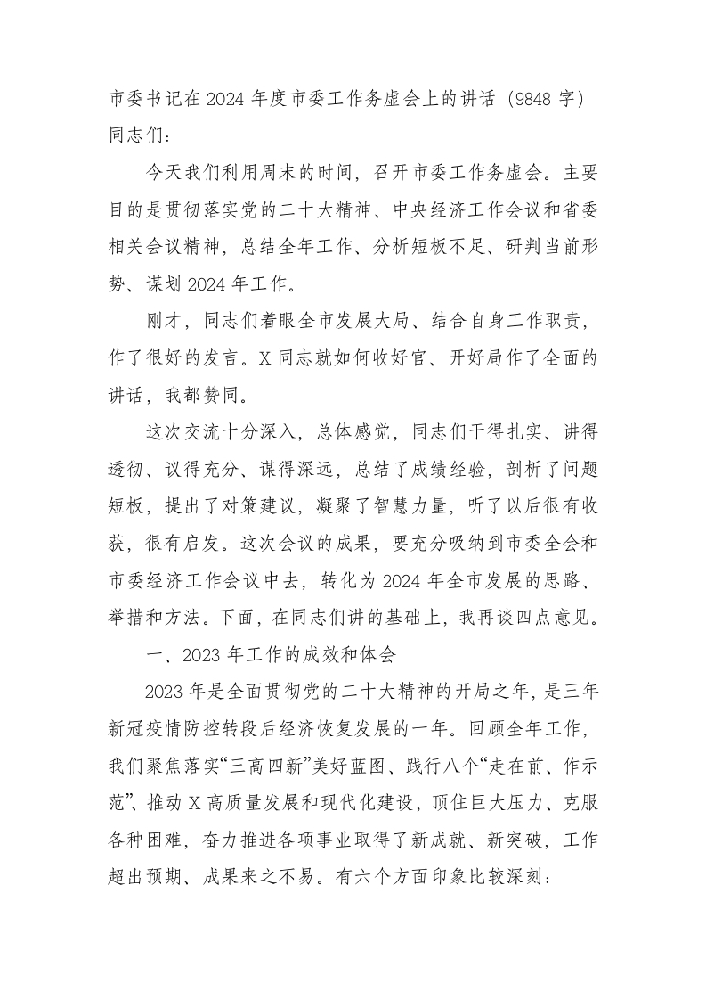 / 市委书记在2024年度市委工作务虚会上的讲话