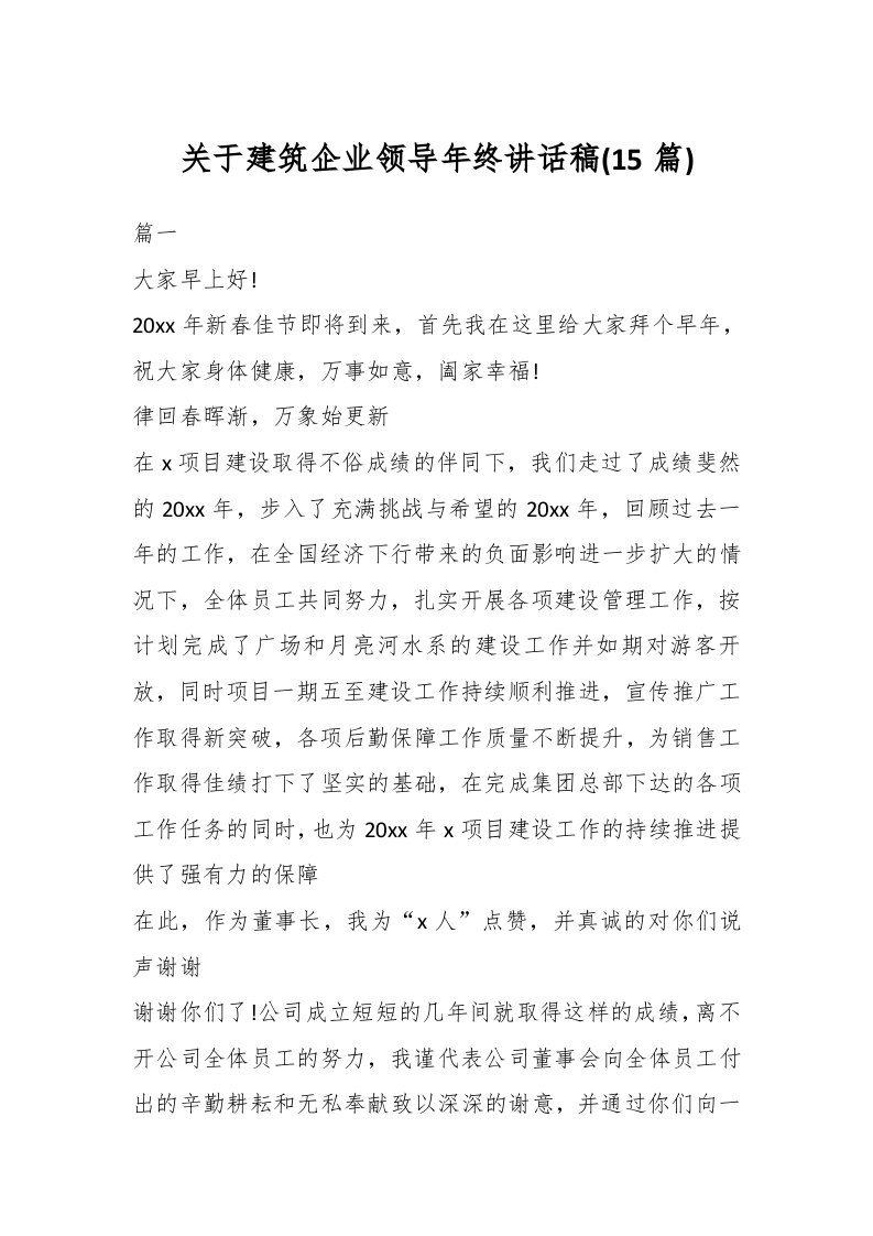 / (15篇)关于建筑企业领导年终讲话稿稿