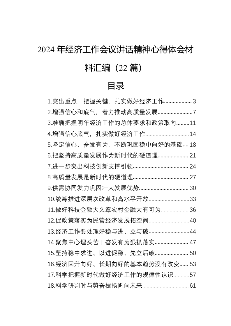 / 2024年经济工作会议讲话稿精神心得体会材料汇编(22篇)