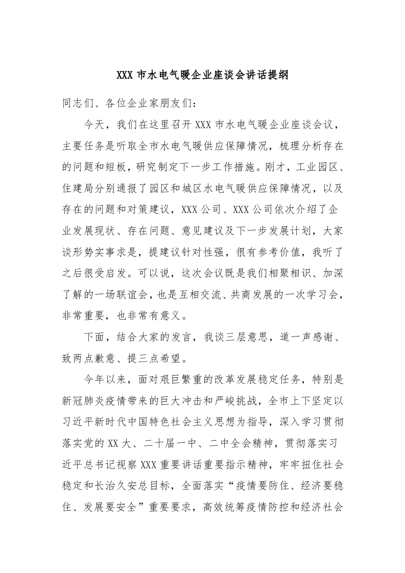 / XXX市水电气暖企业座谈会讲话稿提纲