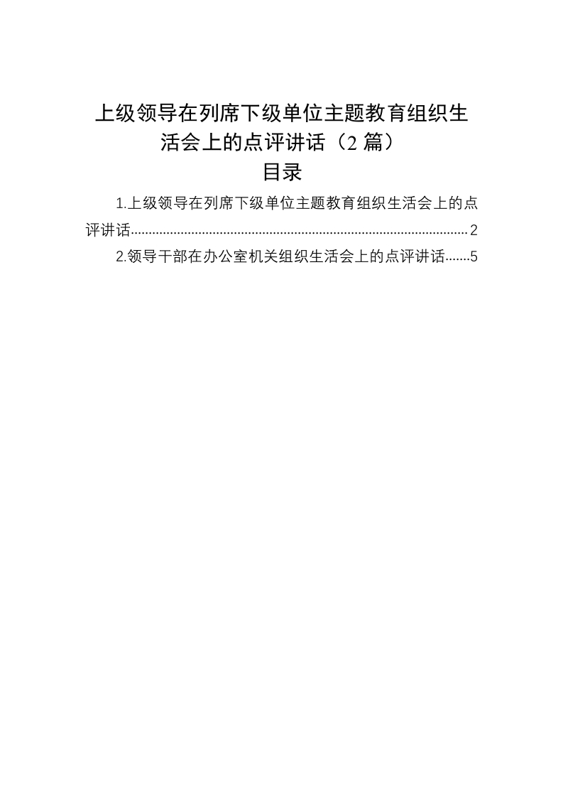 / 上级领导在列席下级单位主题教育组织生活会上的点评讲话稿(2篇)
