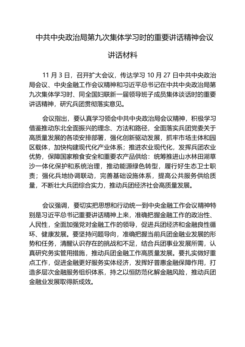 中共中央政治局第九次集体学习时的重要讲话稿精神会议讲话稿材料
