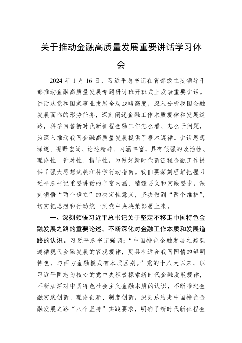 关于推动金融高质量发展重要讲话稿学习体会