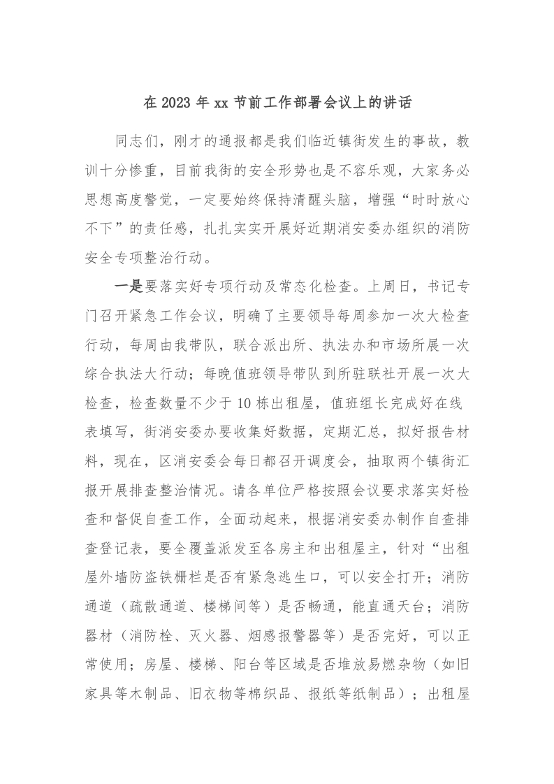 / 在2023年xx节前工作部署会议上的讲话稿
