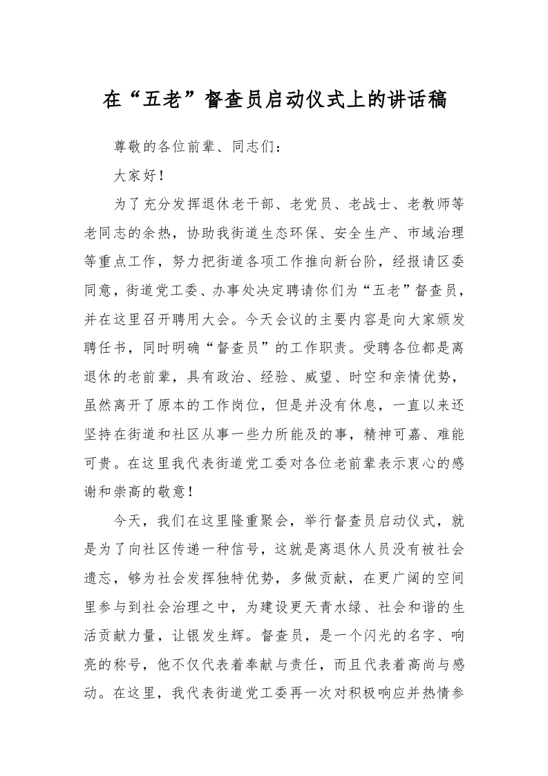 / 在“五老”督查员启动仪式上的讲话稿稿
