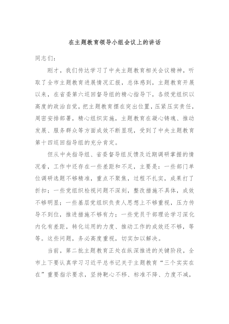 / 在主题教育领导小组会议上的讲话稿 (2)