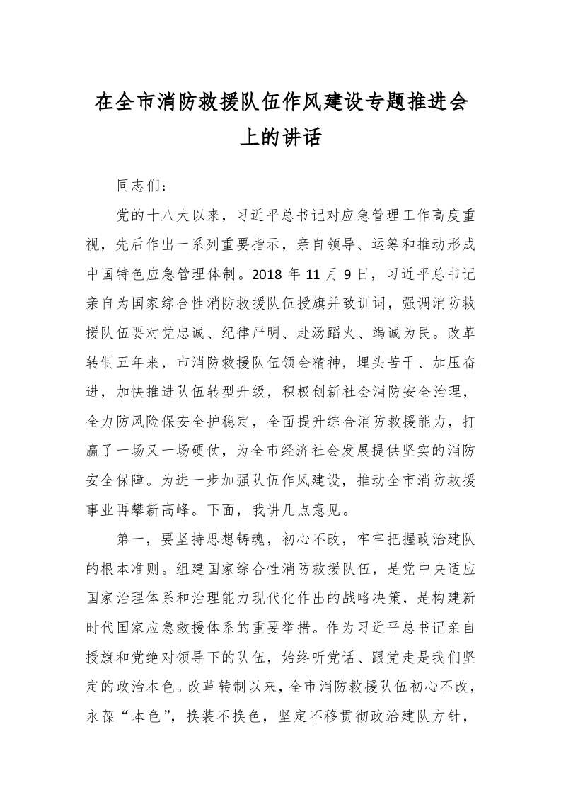 / 在全市消防救援队伍作风建设专题推进会上的讲话稿
