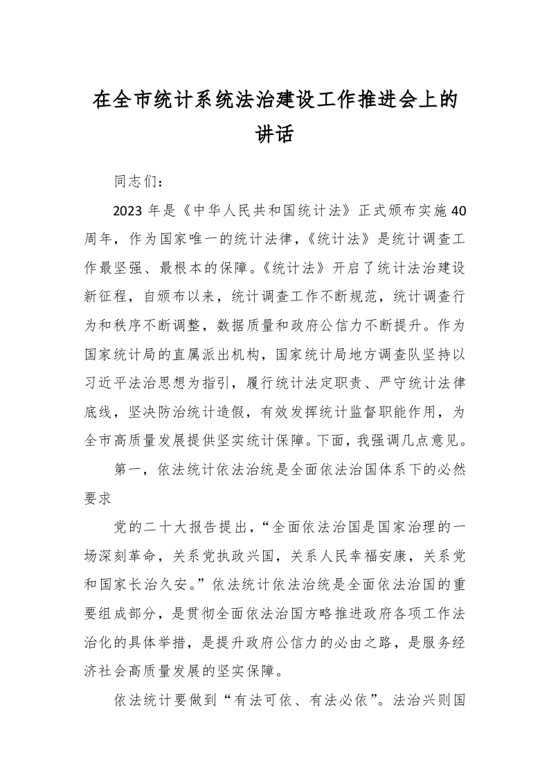 / 在全市统计系统法治建设工作推进会上的讲话稿
