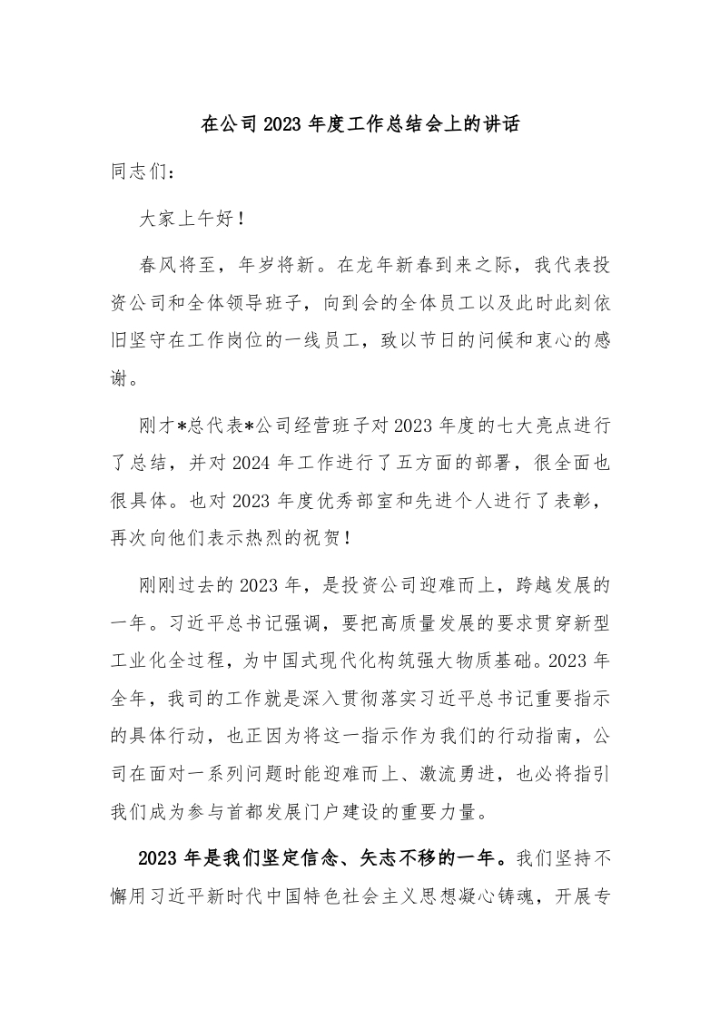 / 在公司2023年度工作总结会上的讲话稿