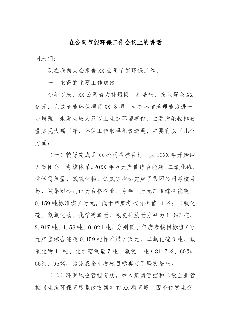 / 在公司节能环保工作会议上的讲话稿