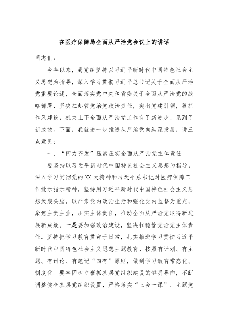 / 在医疗保障局全面从严治党会议上的讲话稿