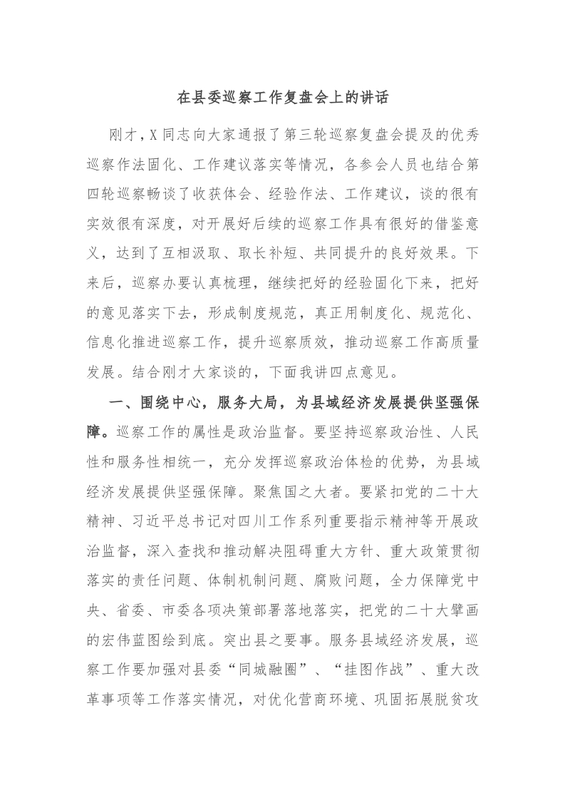 / 在县委巡察工作复盘会上的讲话稿文档