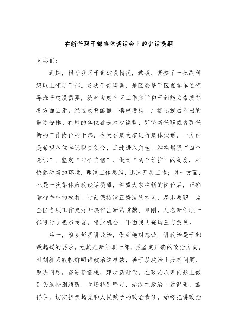 / 在新任职干部集体谈话会上的讲话稿提纲