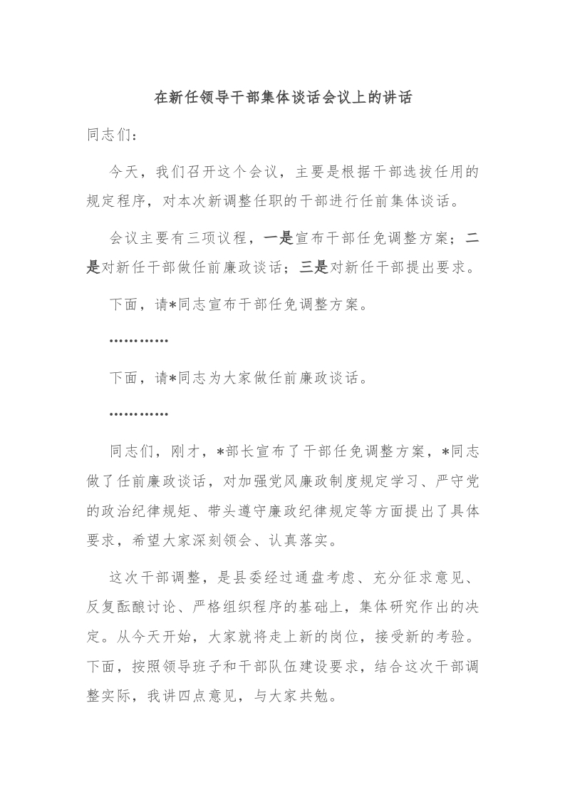 / 在新任领导干部集体谈话会议上的讲话稿