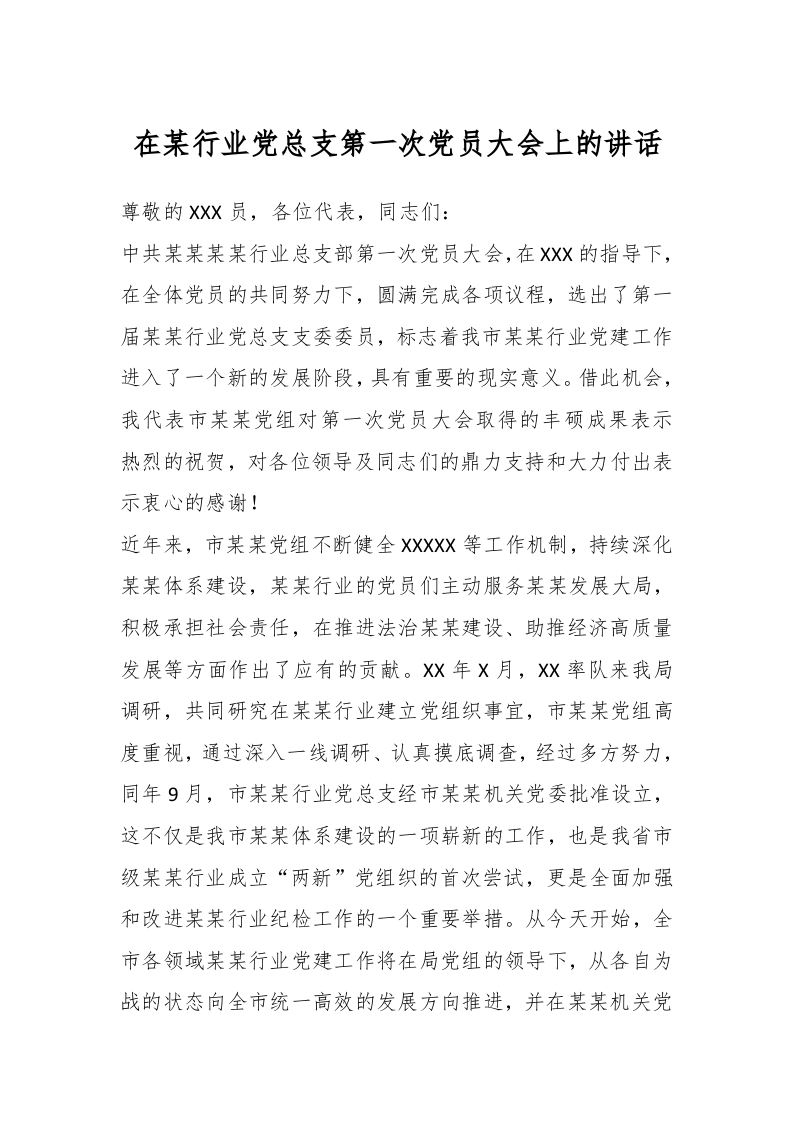 / 在某行业党总支第一次党员大会上的讲话稿