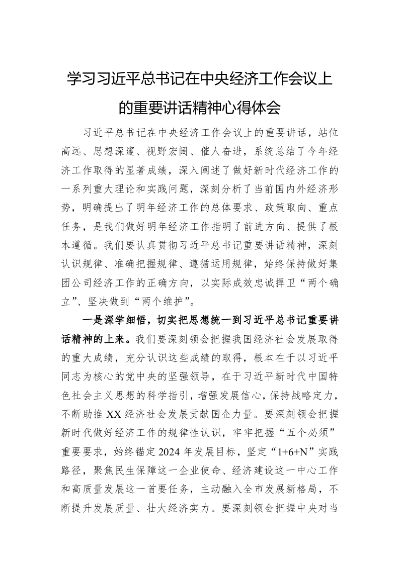 / 学习习近平总书记在中央经济工作会议上的重要讲话稿精神心得体会
