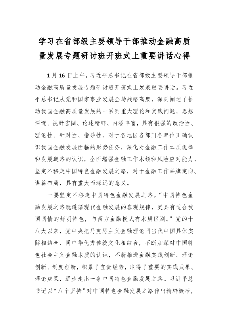/ 学习在省部级主要领导干部推动金融高质量发展专题研讨班开班式上重要讲话稿心得