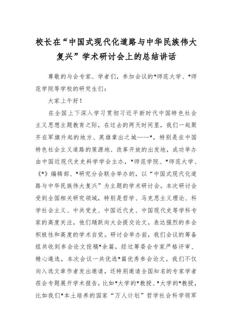 / 校长在“中国式现代化道路与中华民族伟大复兴”学术研讨会上的总结讲话稿