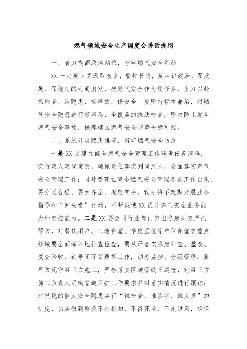 / 燃气领域安全生产调度会讲话稿提纲