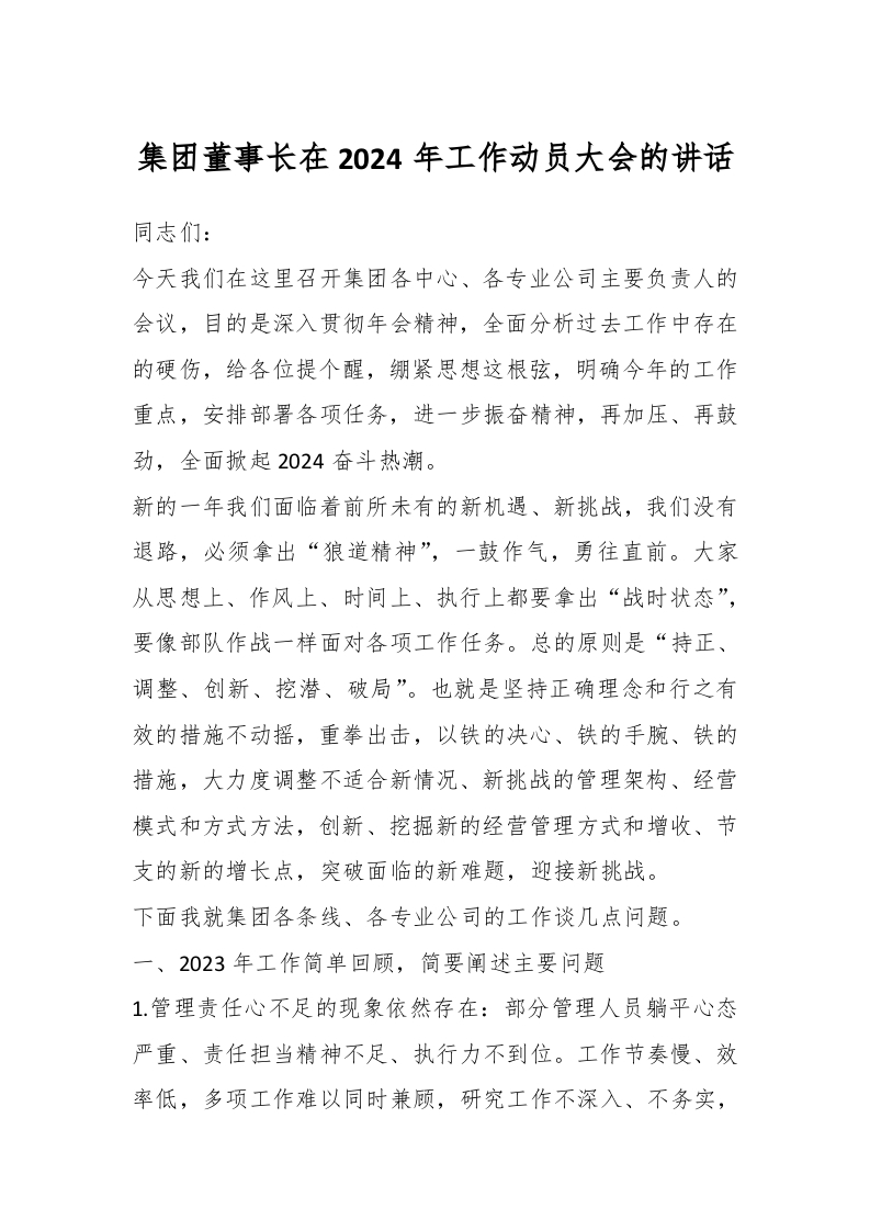 / 集团董事长在2024年工作动员大会的讲话稿
