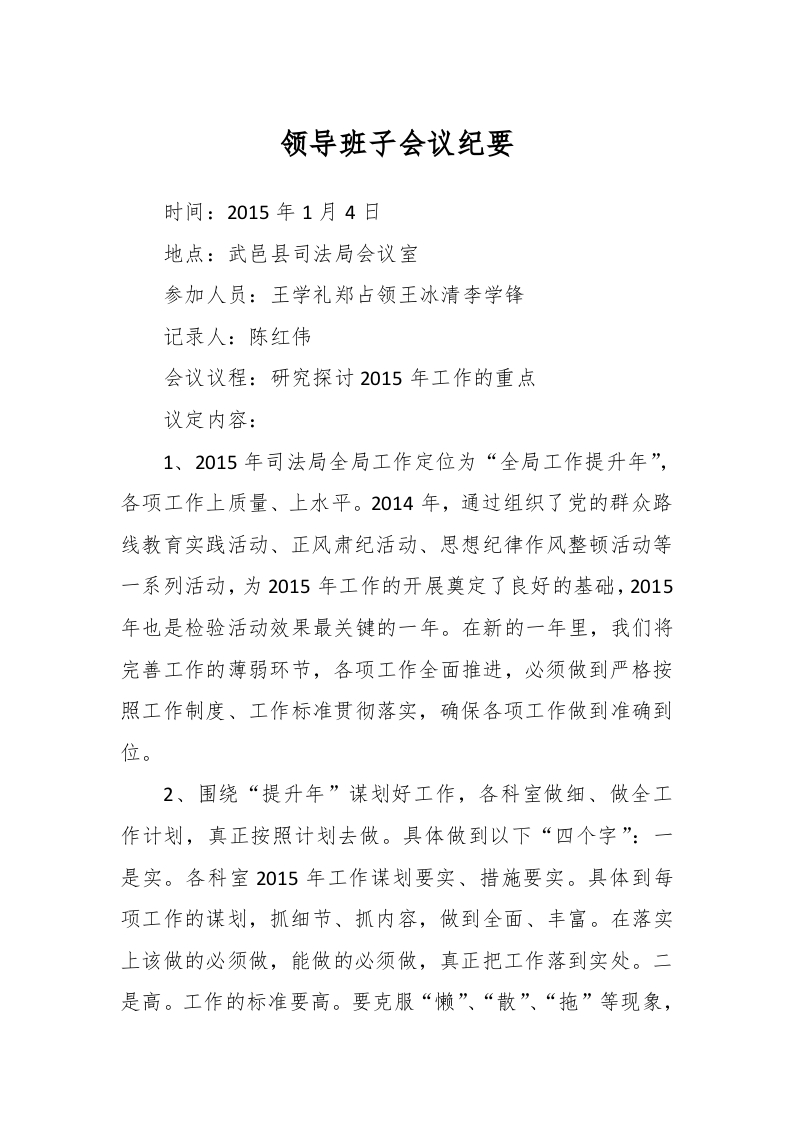 领导班子会议纪要