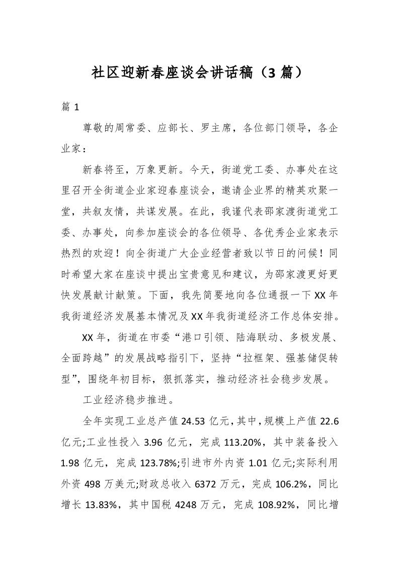 (3篇)社区迎新春座谈会讲话稿稿