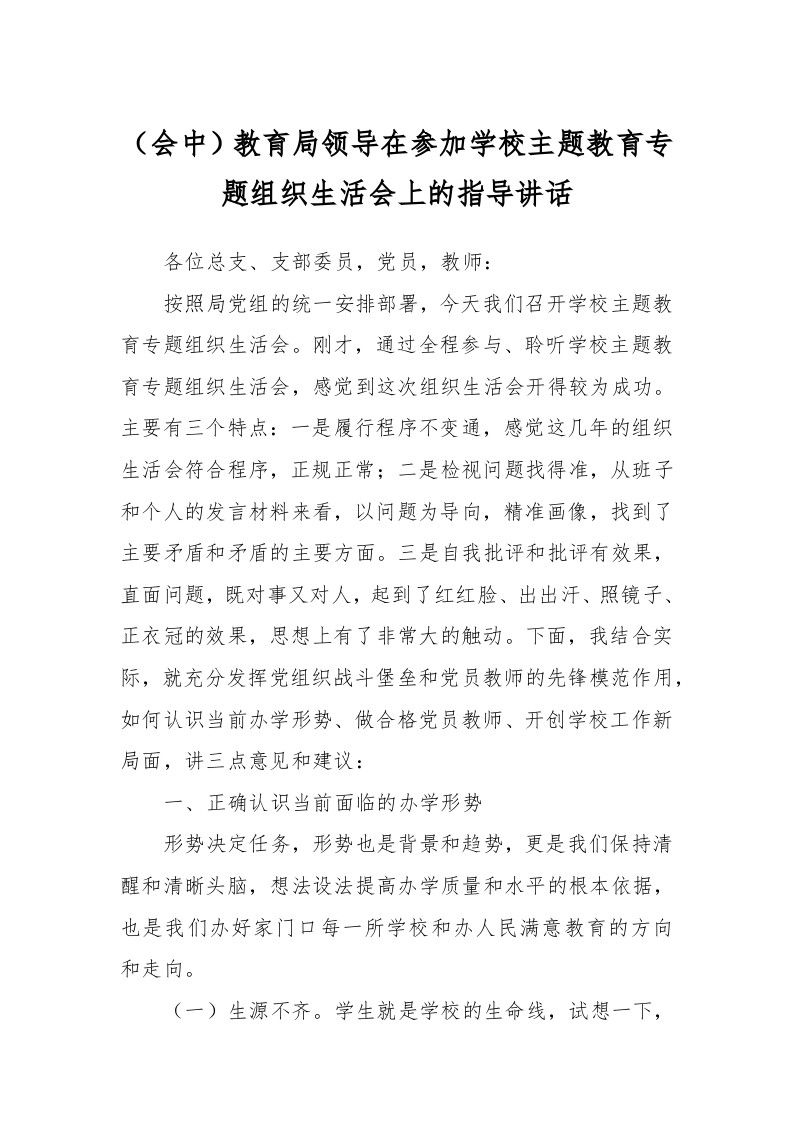 (会中)教育局领导在参加学校主题教育专题组织生活会上的指导讲话稿