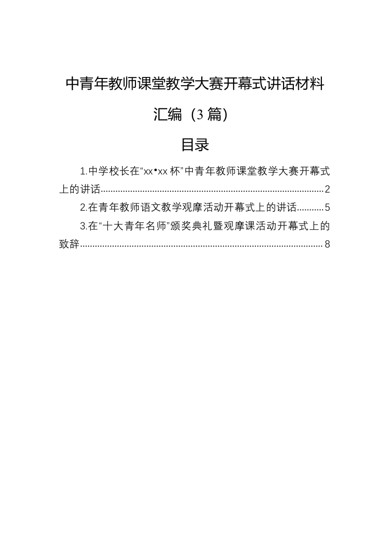 / 中青年教师课堂教学大赛开幕式讲话稿材料汇编(3篇)