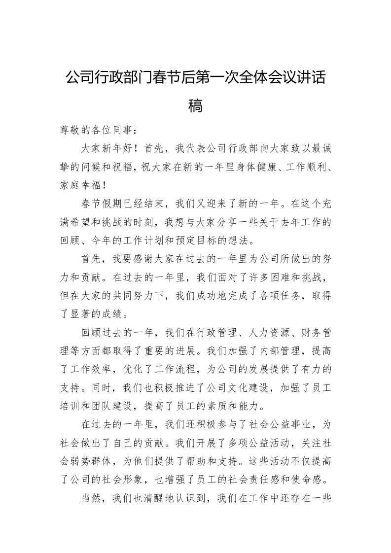/ 公司行政部门春节后第一次全体会议讲话稿稿