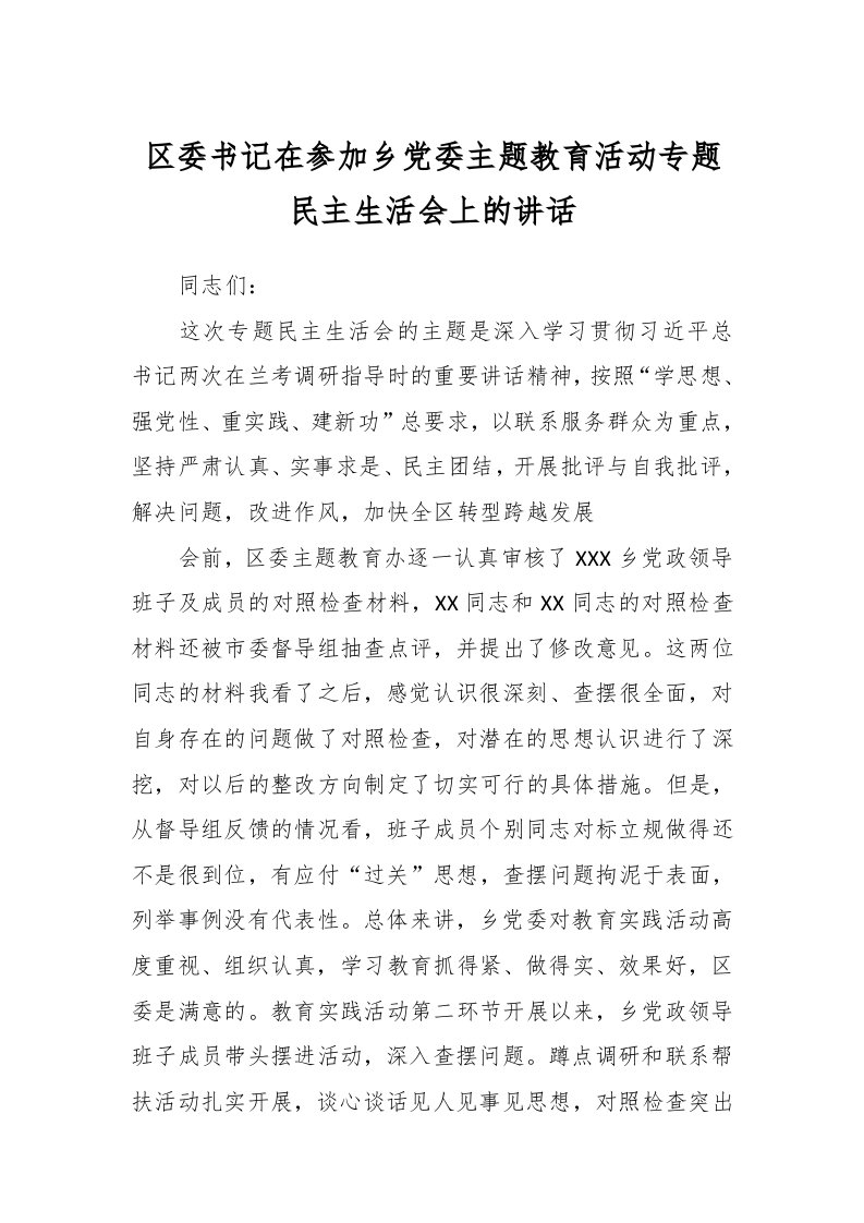 / 区委书记在参加乡党委主题教育活动专题民主生活会上的讲话稿