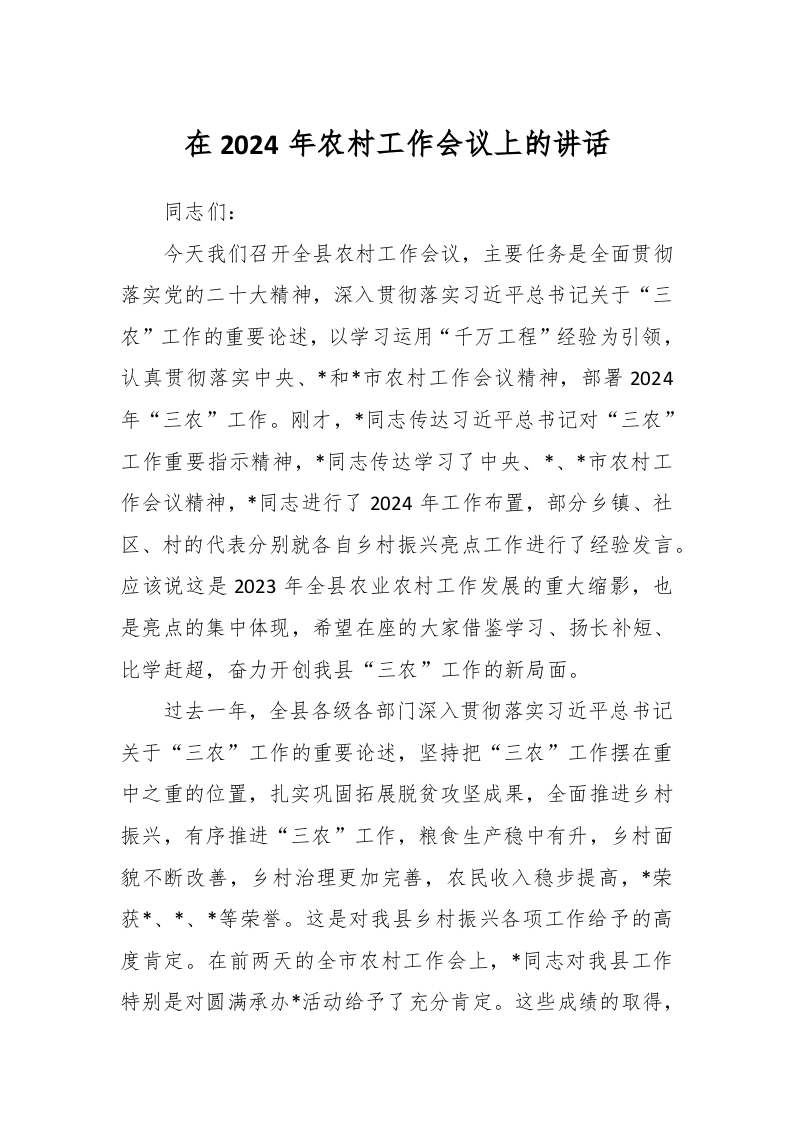 在2024年县安委会、减灾委全体(扩大)会暨全国“两会”期间安全防范工作布置会上的讲话稿