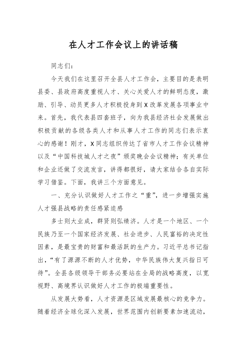 / 在人才工作会议上的讲话稿稿