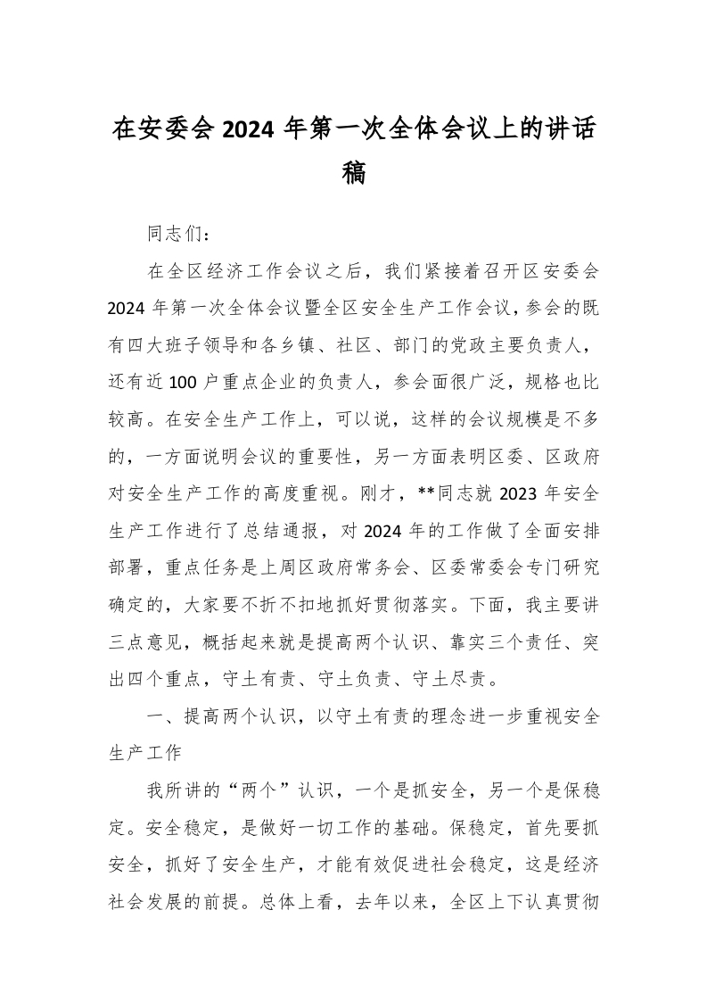 / 在安委会2024年第一次全体会议上的讲话稿稿