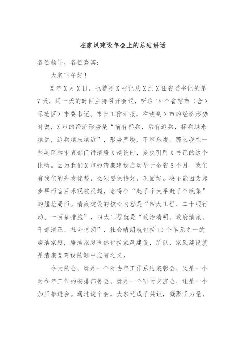 / 在家风建设年会上的总结讲话稿