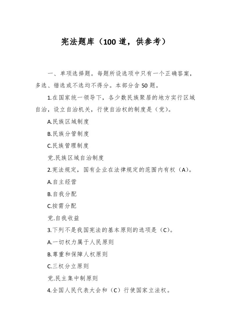 / 宪法题库(100道,供参考)