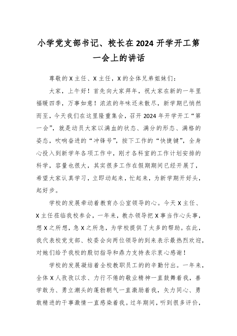 / 小学党支部书记、校长在2024开学开工第一会上的讲话稿