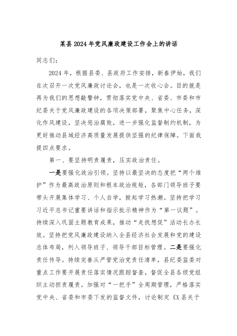 / 某县2024年党风廉政建设工作会上的讲话稿