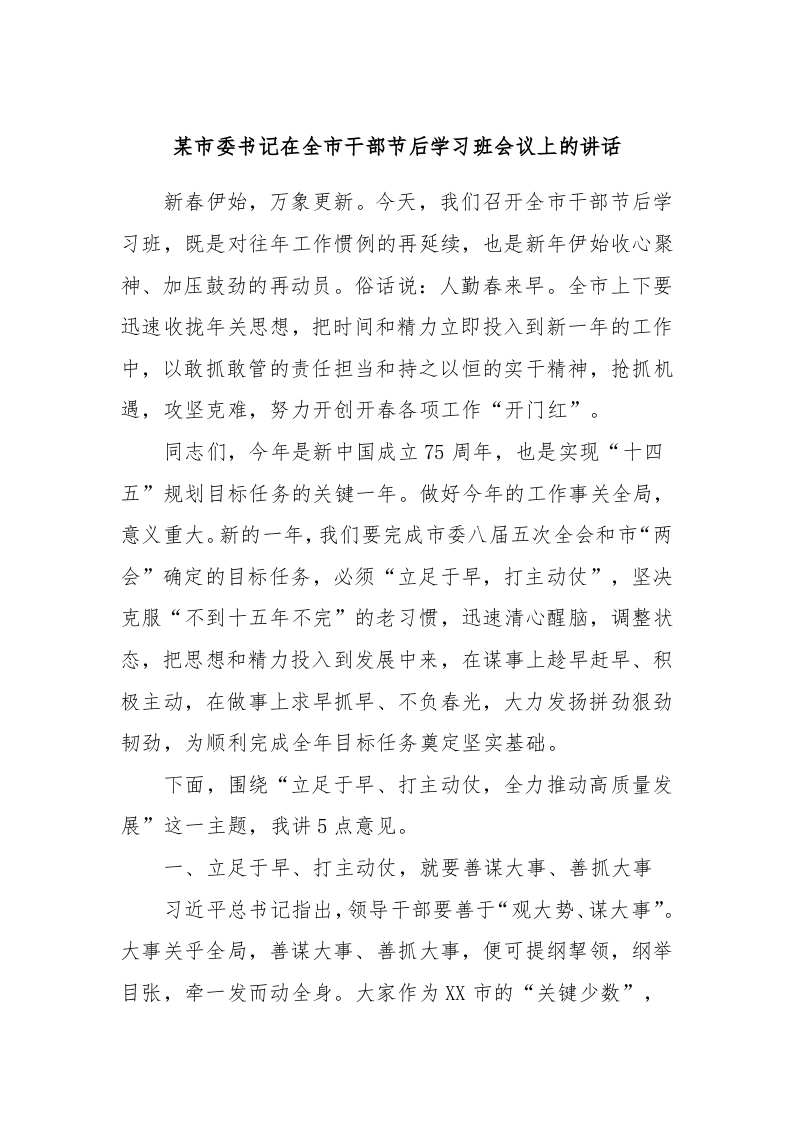 / 某市委书记在全市干部节后学习班会议上的讲话稿