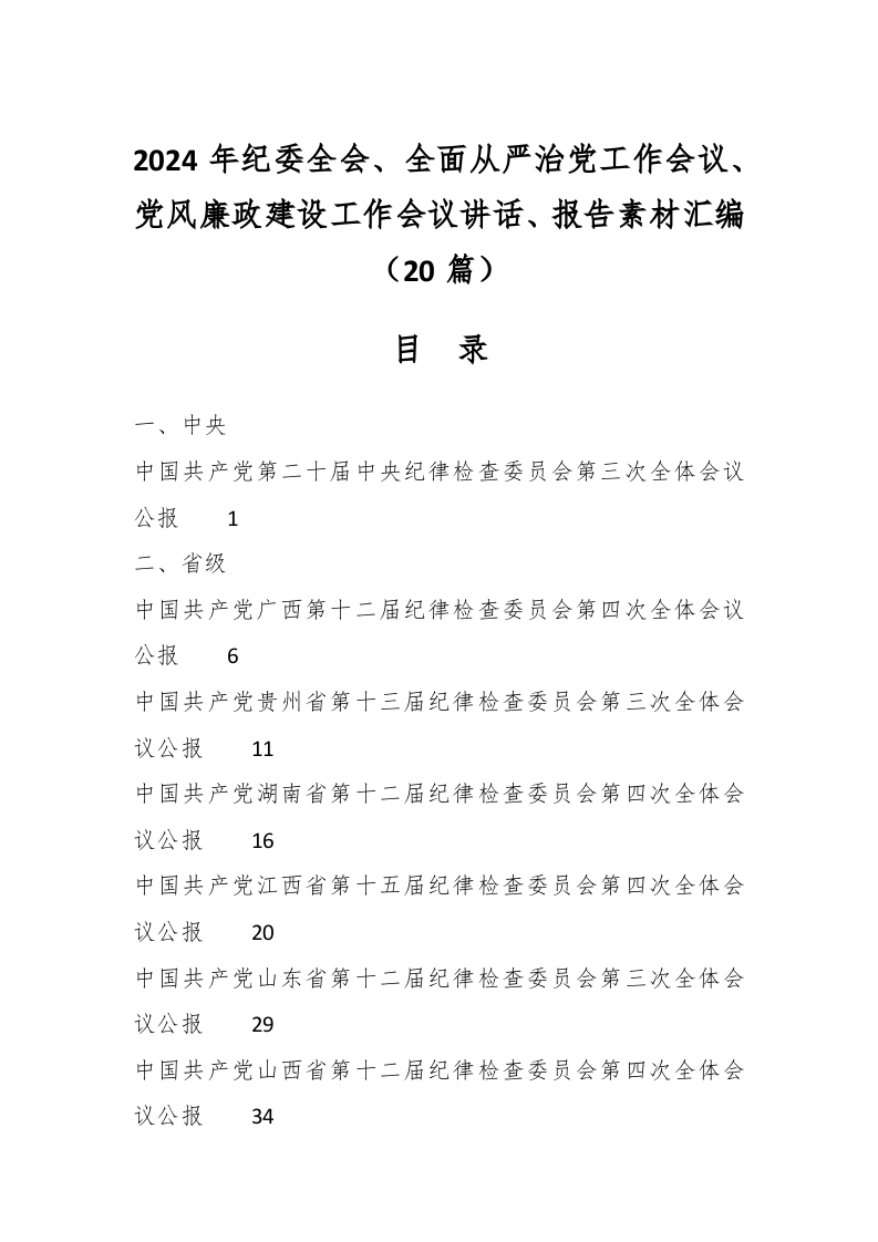 (20篇)2024年纪委全会、全面从严治党工作会议、党风廉政建设工作会议讲话稿、报告素材汇编
