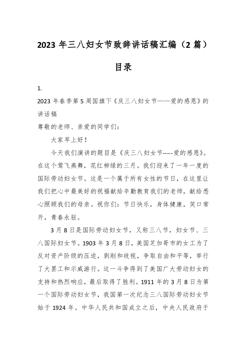 / (2篇)2023年三八妇女节致辞讲话稿稿汇编