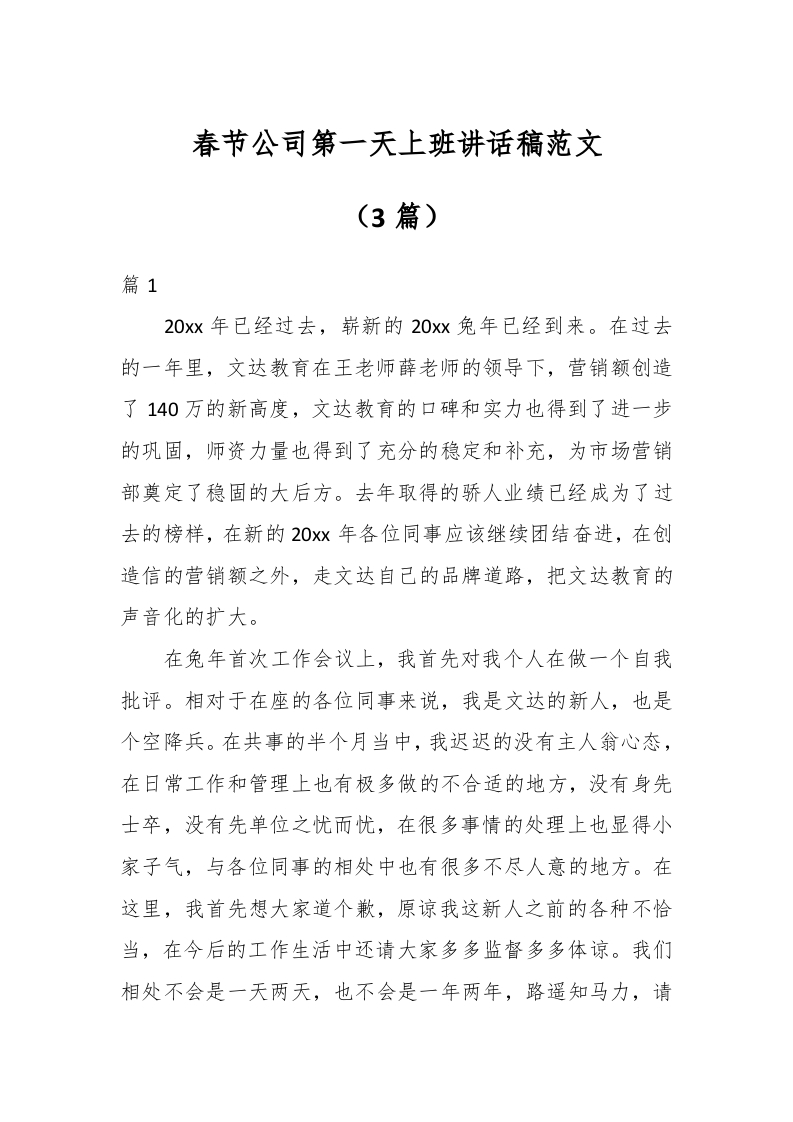 / (3篇)春节公司第一天上班讲话稿范文
