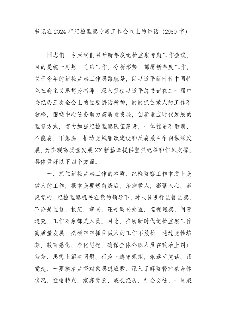 / 书记在2024年纪检监察专题工作会议上的讲话