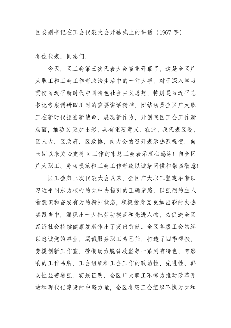 / 区委副书记在工会代表大会开幕式上的讲话