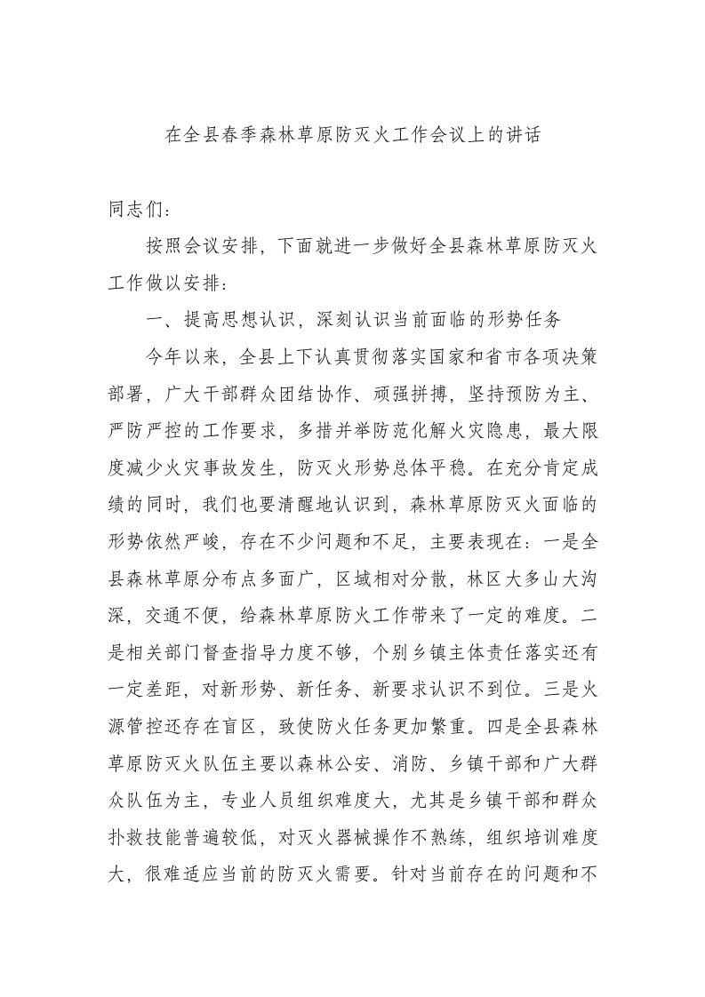 / 在全县春季森林草原防灭火工作会议上的讲话