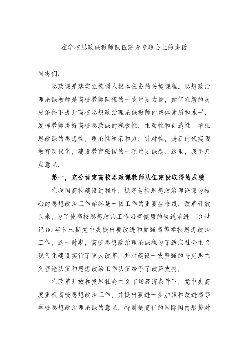 / 在学校思政课教师队伍建设专题会上的讲话