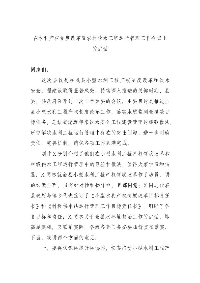 / 在水利产权制度改革暨农村饮水工程运行管理工作会议上的讲话