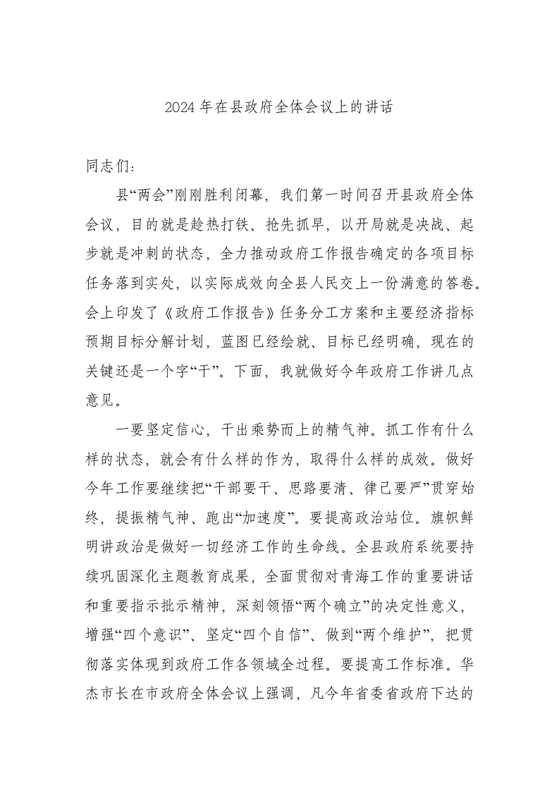 / 2024年在县政府全体会议上的讲话