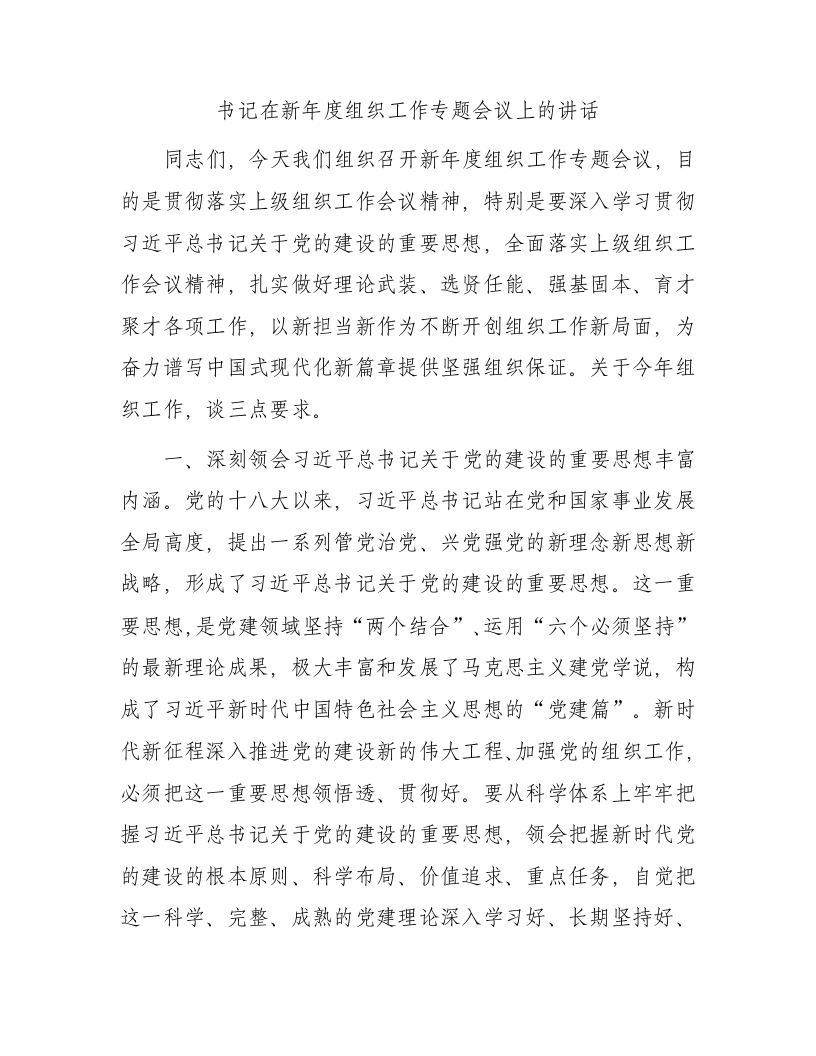 / 书记在新年度组织工作专题会议上的讲话