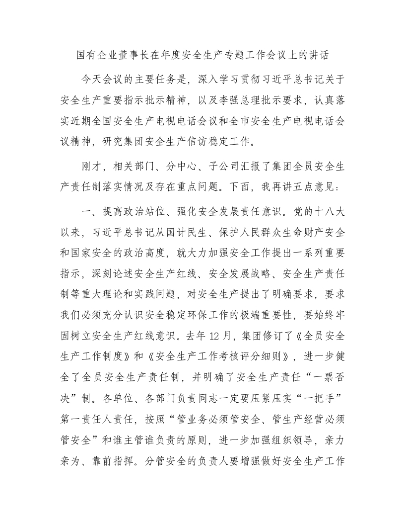 / 国有企业董事长在年度安全生产专题工作会议上的讲话